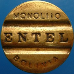 boli 15-1 (g) ENTEL(in a rectangle) (g) (incuse) (g) (g) (g) IND. / BOLIVIANA (incuse) Bolivia B 22.8 Sd 0