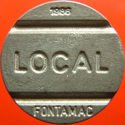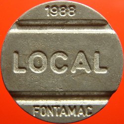 bras 522v2 | 1988 (g) LOCAL (g) FONTAMAC (incuse) (date round 5 x 1,5mm, fontamac 8mm) | (square) / SISTEMA / TELEBRÃS (g) (logo) (incuse) | Brazil | Z | 23.4 | Sd | 0 | |