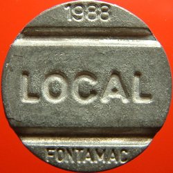 bras 522v1 | 1988 (g) LOCAL (g) FONTAMAC (incuse) (date round 5 x 1,5mm, fontamac 8mm) | (square) / SISTEMA / TELEBRÃS (g) (logo) (incuse) | Brazil | Z | 23.0 | Sd | 0 | |