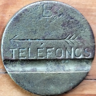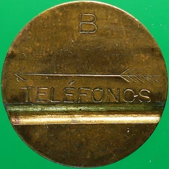 spai B3-1 B / arrow / TELÉFONOS (g) (thin arrow longer than Telefonos) (incuse) B / (arrow) / CTNE (g) (first sideline of the arrow ends beyond E) (incuse) Spain B 21.2 Sd 6