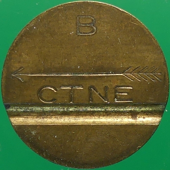 spai B3-2 B / arrow / TELÉFONOS (g) (incuse) B / (arrow) / CTNE (g) (round C) (two sidelines of the arrow ends above E) (incuse) Spain B 21 Sd 6