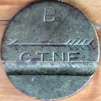 spai BT1-1 BT arrow / TELEFONOS (g) (T struck on B) (surface with cavities) (incuse) (g) CTNE (surface with cavities) (incuse) Spain B 21 Sd 6