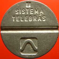 ![]() | bras 570 | 1988 (g) LOCAL (g) FONTAMAC (incuse) (date round 6 x 2mm, fontamac 11mm) | I(in square) / SISTEMA / TELEBRÃS (g) (logo) (incuse) | Brazil | Z | 23 | Sd | 0 | ||